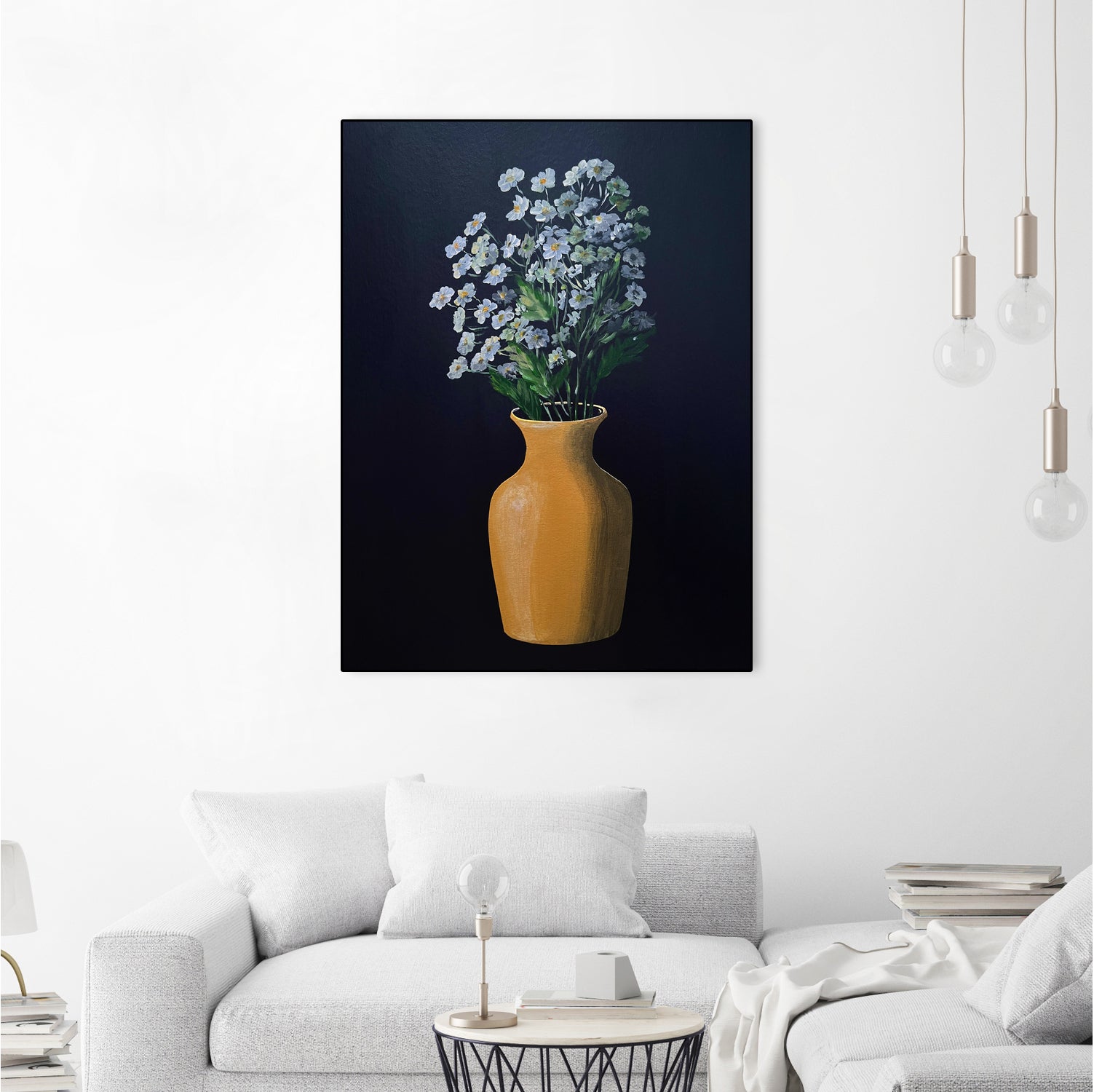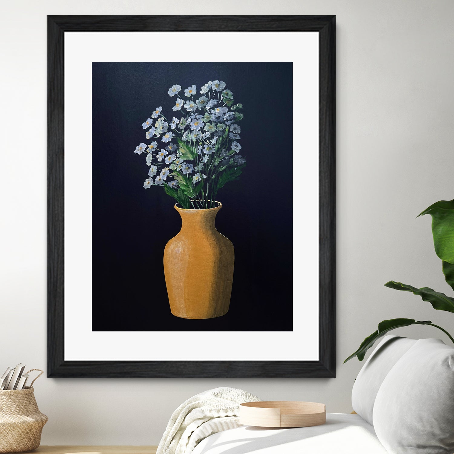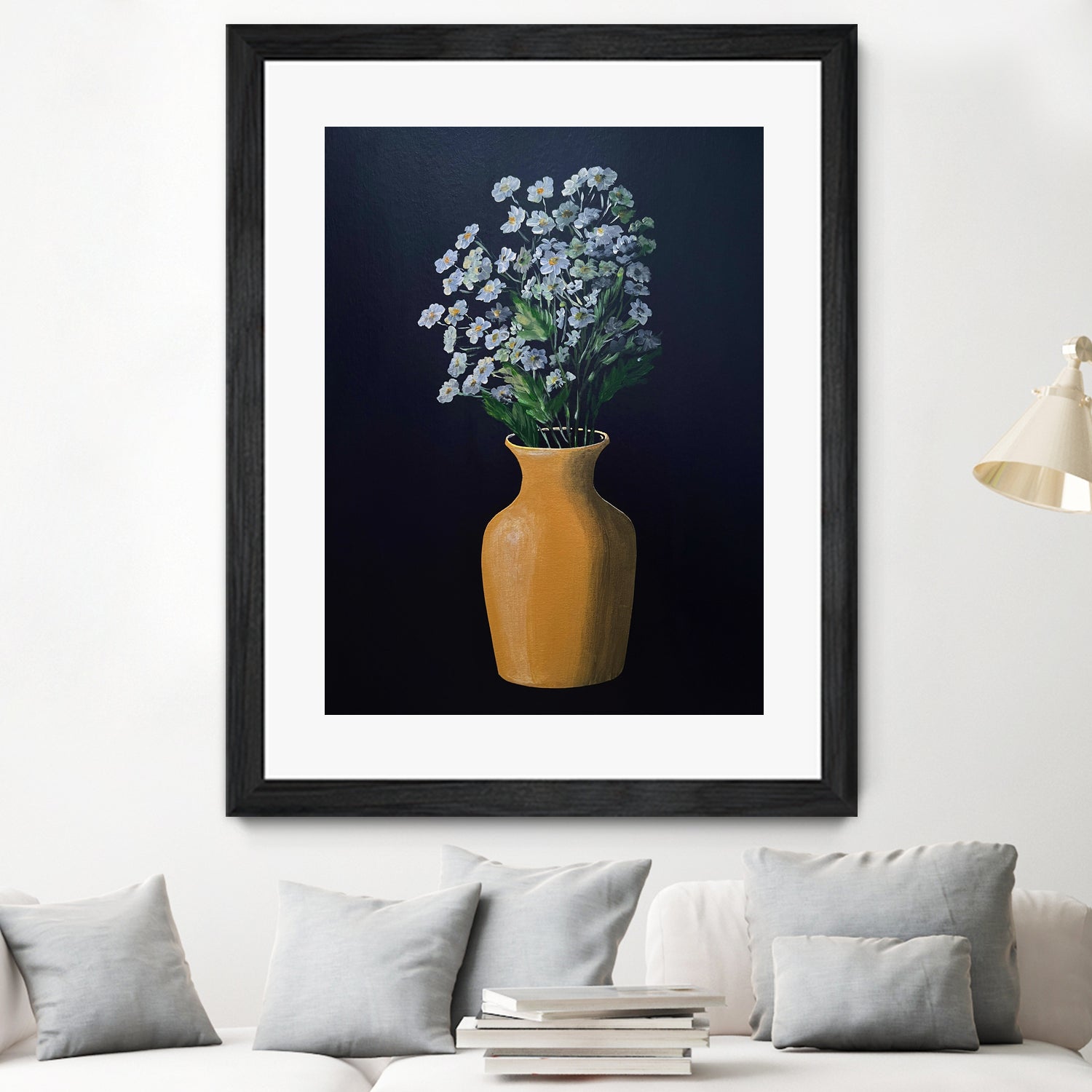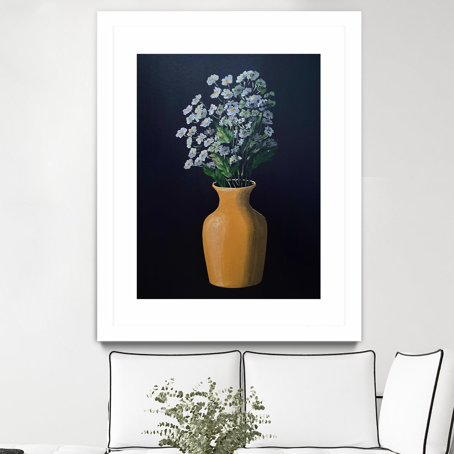 White Flowers Golden Vase